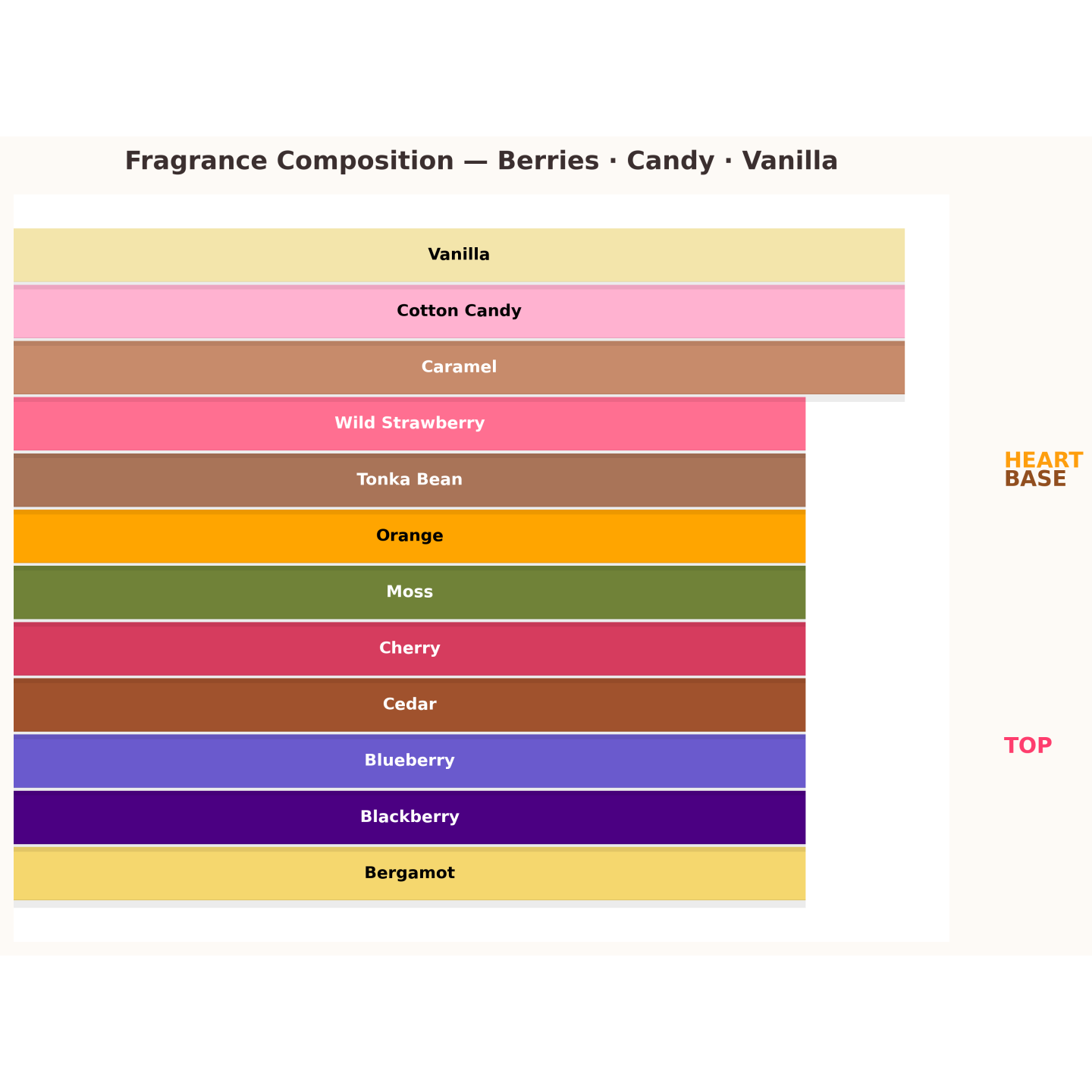 ✔ Serce: wata cukrowa, czereśnia, poziomki leśne
