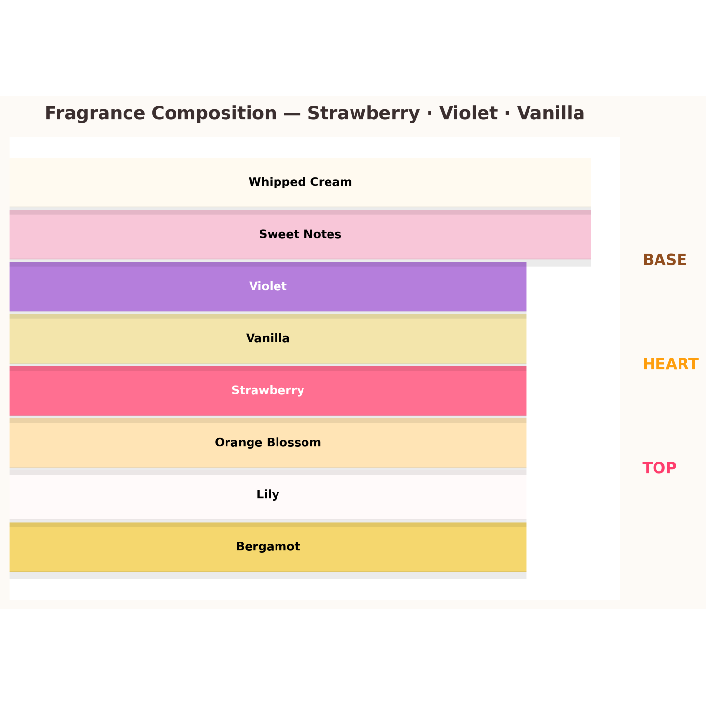 ✔ Serce: słodkie nuty, fiołek, lilia, kwiat pomarańczy