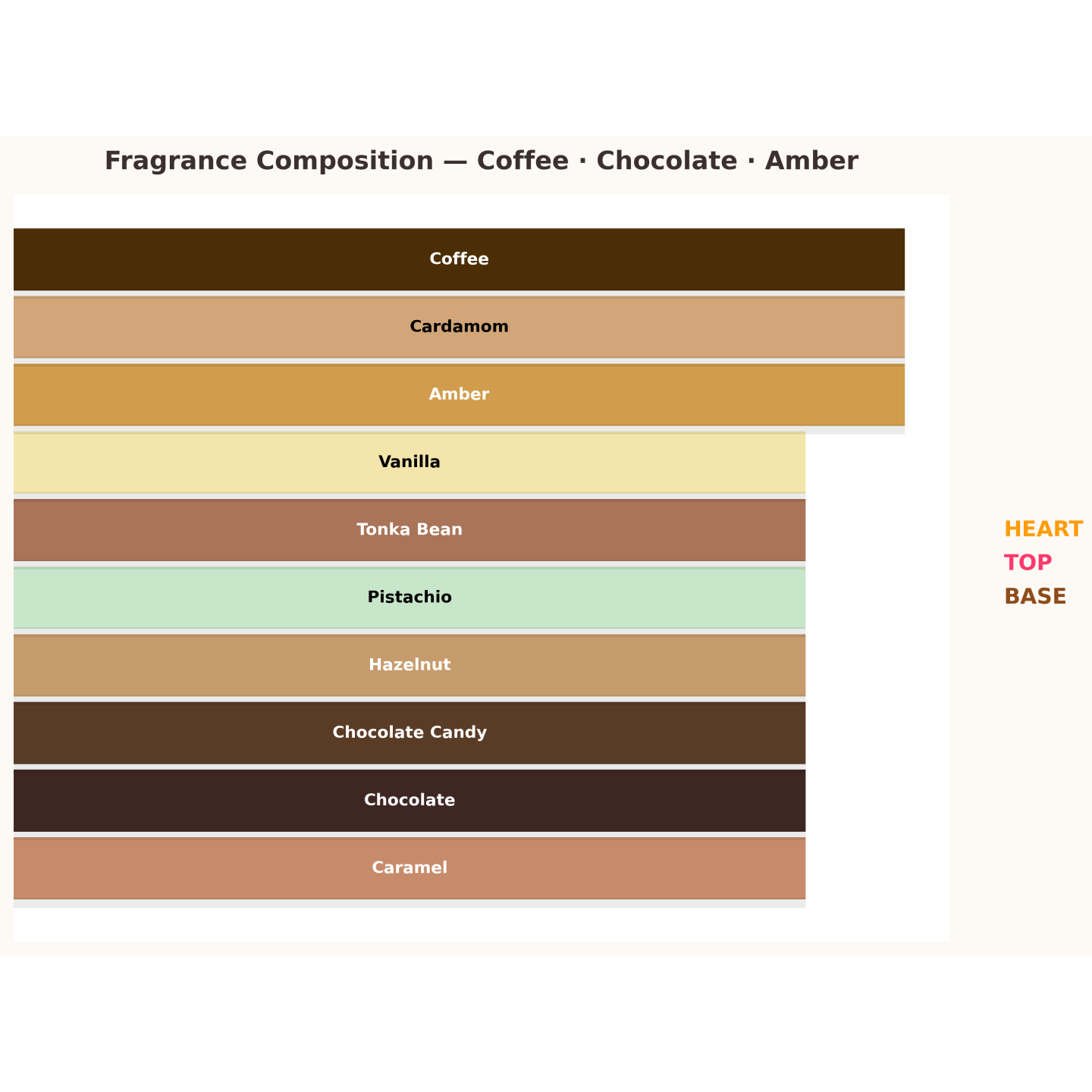 Unisex woda perfumowana o gourmandowej kompozycji z nutami kawy, czekolady, orzechów i wanilii, otulona ciepłem ambry i tonki – idealna na chłodniejsze dni i wyjątkowe okazje