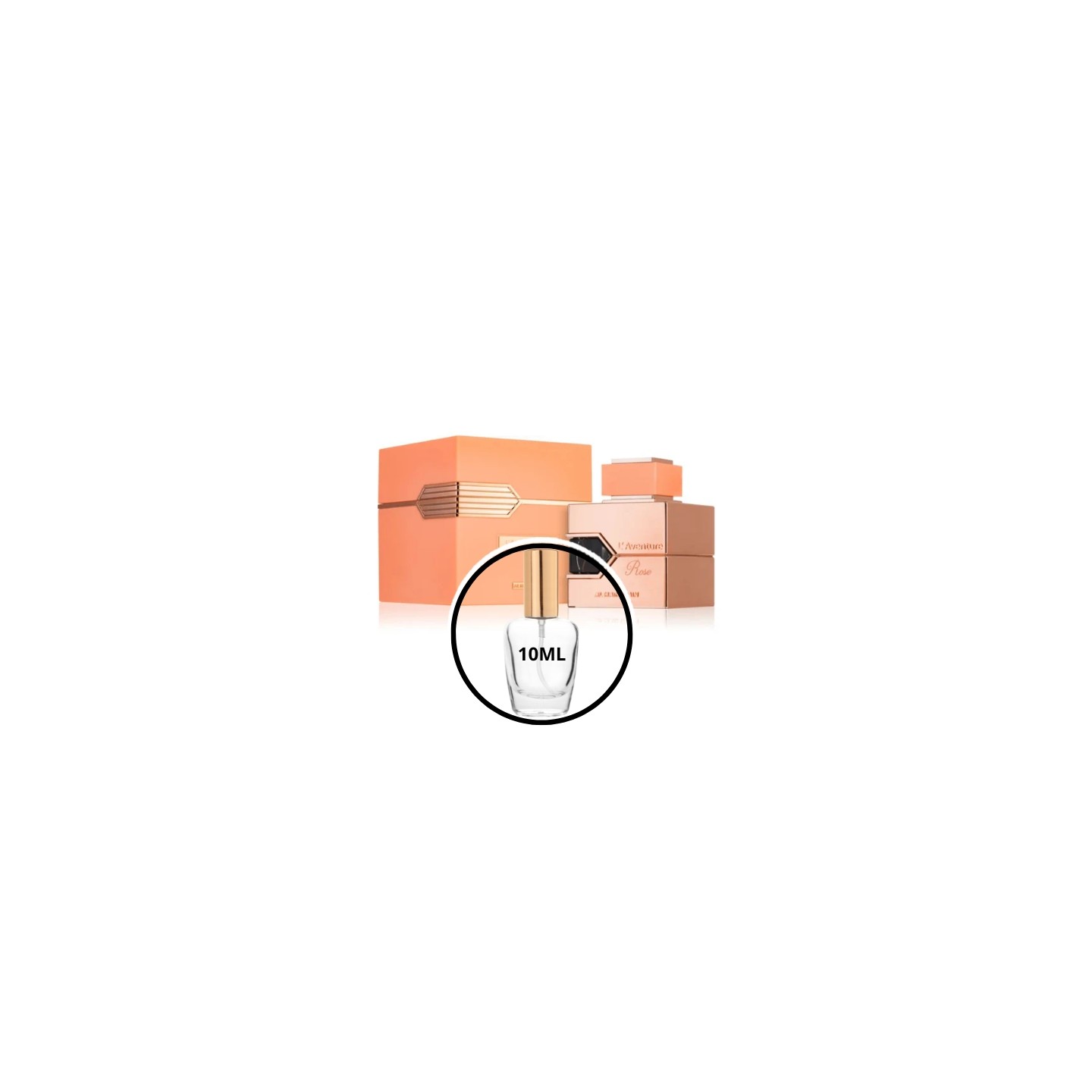 A CAST OF THE ORIGINAL Al Haramain L'Aventure Rose PERFUME, precisely poured from a full-size bottle into a glass atomizer bottle. The fragrance emphasizes intense, sensual femininity, combining deep floral accords with oriental warmth. Perfect for women seeking elegance, passion, and long-lasting, expressive projection.