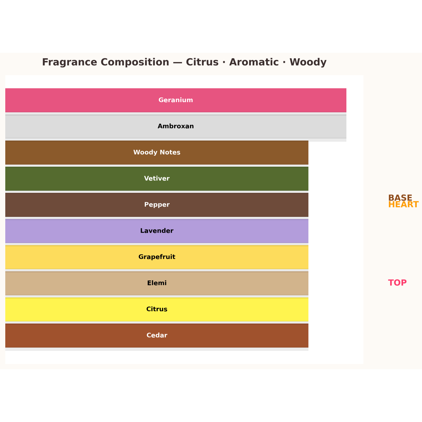 ✔ Heart notes: geranium, lavender, elemi, pepper