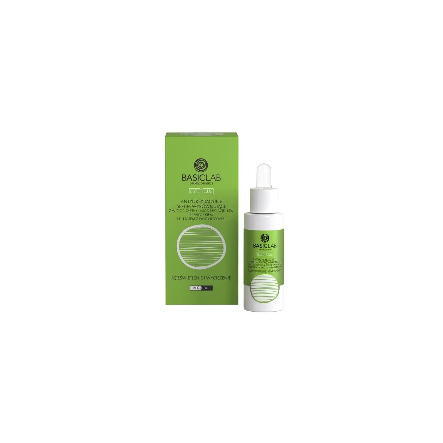 The antioxidant balancing serum BasicLab Esteticus, with a stabilized form of ethyl vitamin C at 15% concentration, with a prebiotic and rice water filtrate, was developed to effectively brighten the skin and calm irritation and inflammation. Perfectly moisturizes, improves skin tone and restores its glow, making it look healthy.