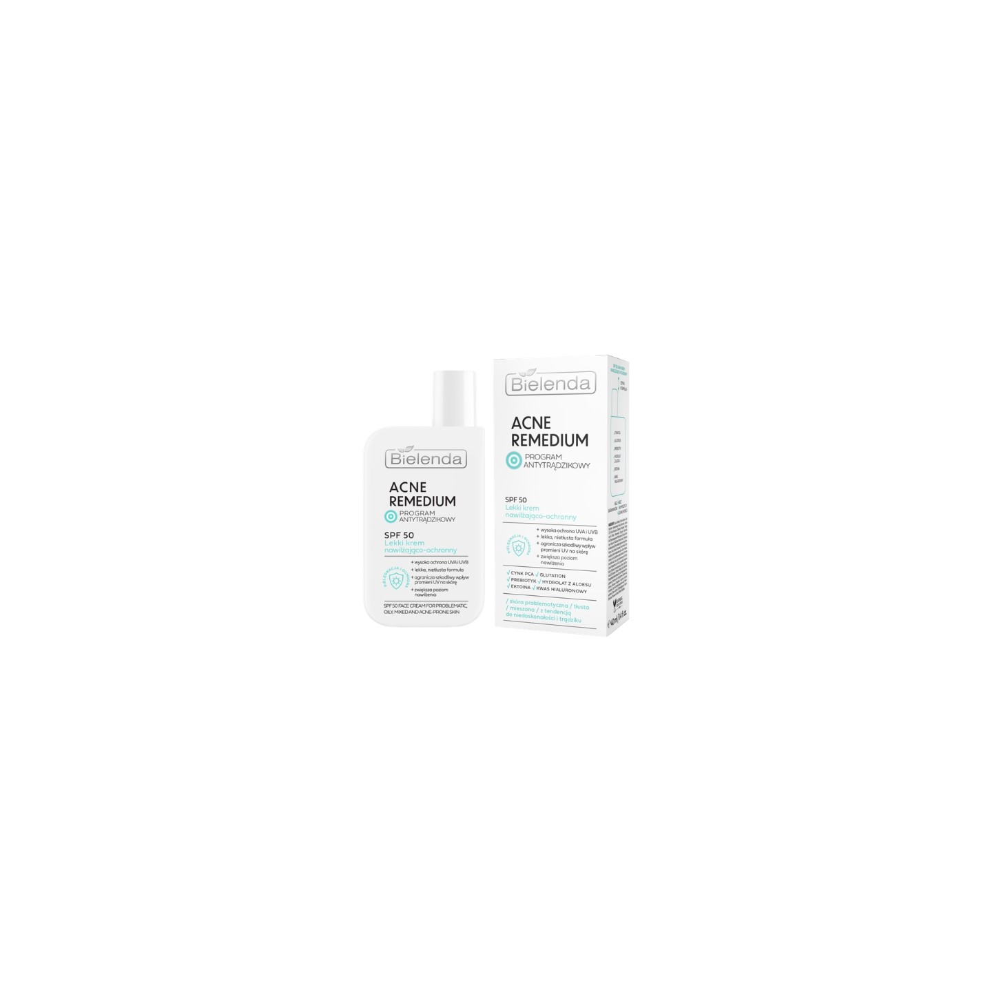 Bielenda Acne Remedium Light Moisturizing and Protective Cream SPF50 is a multifunctional cosmetic designed for oily, combination, and acne-prone skin. It combines high sun protection with skincare, helping maintain a healthy-looking complexion every day. The formula provides effective protection against UVA and UVB radiation, preventing photoaging and discoloration. It also moisturizes and supports skin balance, reducing the appearance of imperfections. The light, quickly si texture doesn't weigh down the skin or create a greasy feel, making the cream an ideal addition to your daily element —even under makeup. The product is fragrance-free and dye-free.