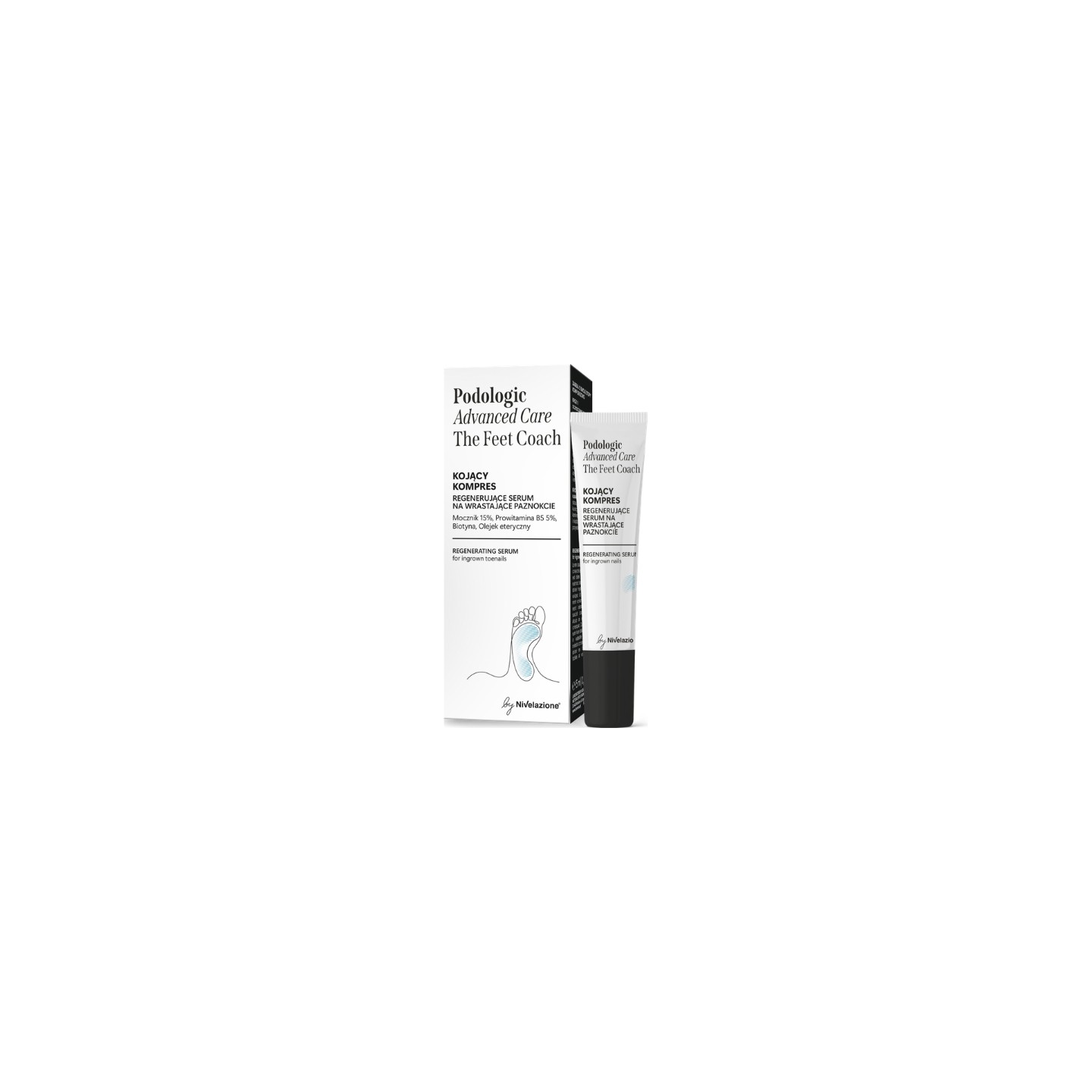 This regenerating serum for ingrown toenails is a professional podiatry product designed for daily home care. It was developed for those si with the pain, irritation, and discomfort associated with ingrown toenails. The serum's formula works multifaceted – it soothes discomfort, softens the skin around the nail, and supports its proper growth. Regular use helps improve the comfort and overall condition of nails and skin. Urea (15%) effectively softens the skin, facilitating proper nail growth. Provitamin B5 intensely moisturizes, regenerates, and soothes irritations, while biotin strengthens the nail plate, increasing its elasticity and resistance to damage. Additionally, essential oils have a refreshing effect and improve comfort of use, providing a feeling of relief and freshness.
