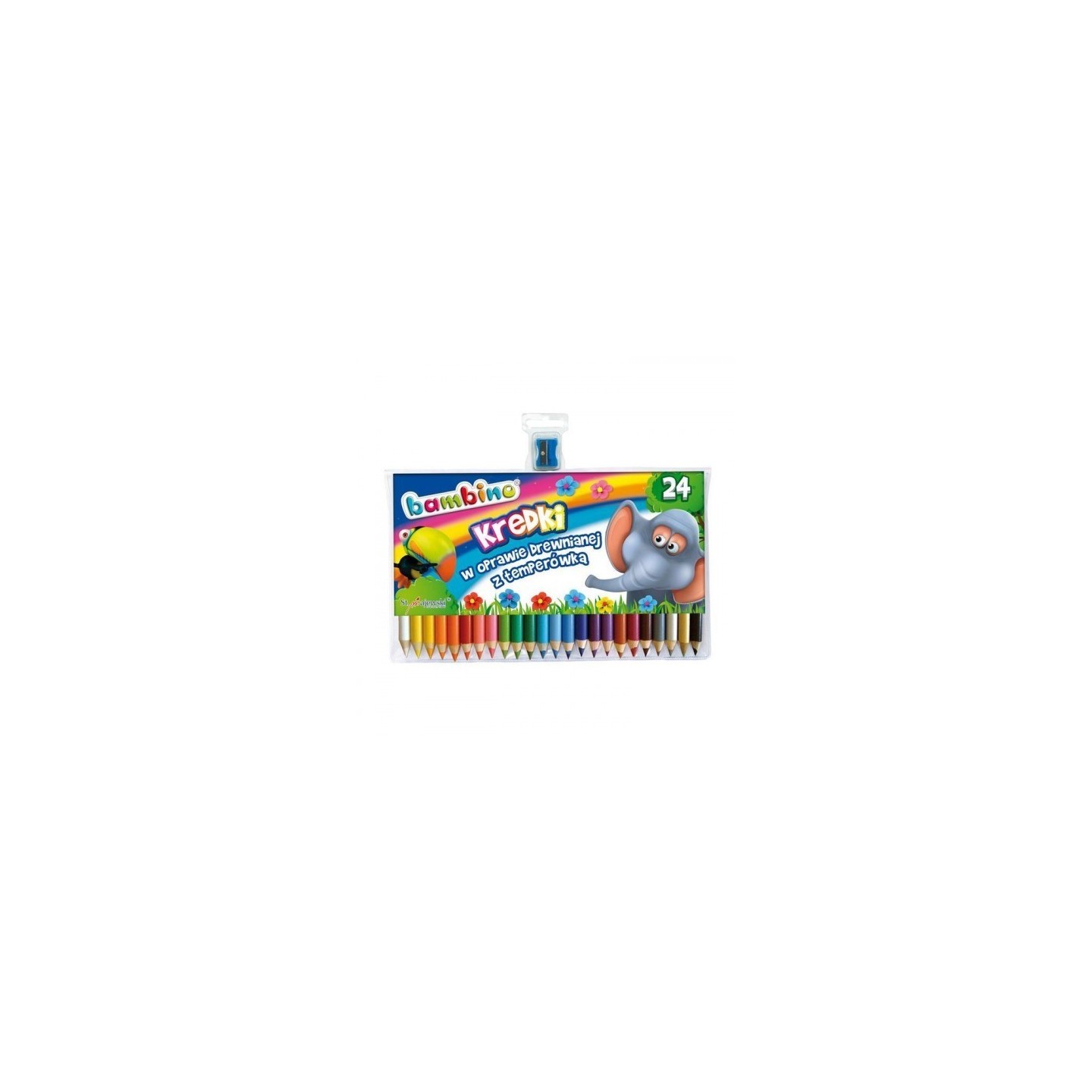 BAMBINO Wooden-Shaped Crayons 24 Colors are the perfect tool for creative drawing and painting for children. The wooden frame ensures durability and comfort of use, while the kaolin clay lead guarantees soft handling, intense coverage, and easy sharpening without crumbling. The set includes 24 saturated colors, including gold and silver crayons, allowing you to create striking, colorful works and interesting details. The crayons are well-balanced and thick, making them a perfect fit for a child's little hand. Polish production and compliance with toy safety standards provide parents with assurance of quality and safety. A practical sharpener si included.