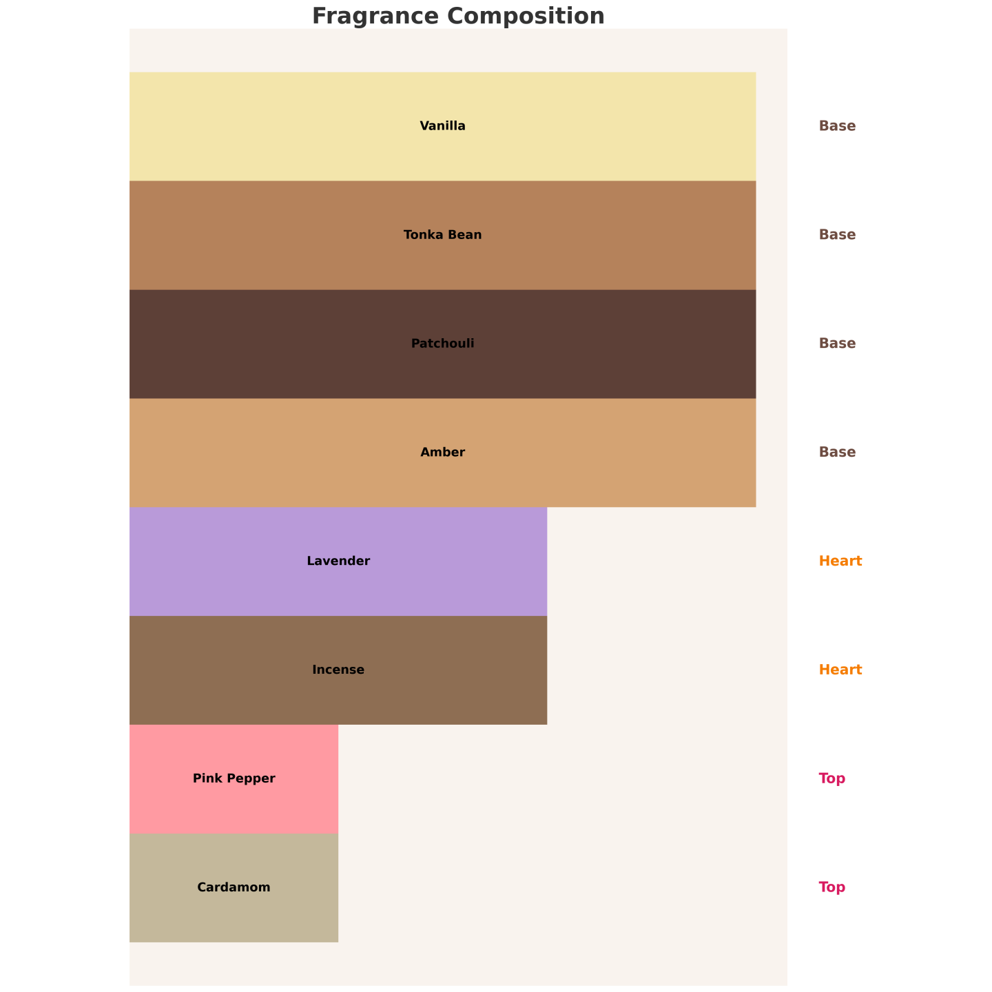 ✔ Base: Vanilla, Tonka Bean, Amber, Patchouli