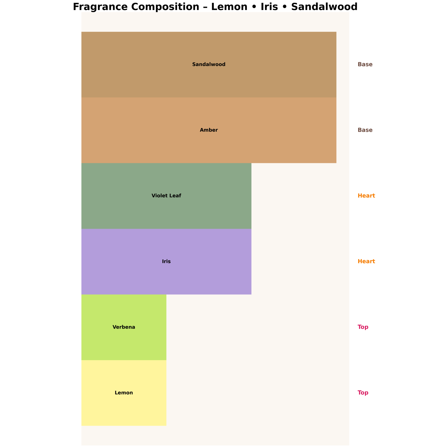 Made in Lab 216 to kompozycja, która łączy lekkość cytrusów z pudrową głębią kwiatów i ciepłem drzewnych akordów. Zapach harmonijny, męski i stylowy — dla mężczyzn, którzy wybierają elegancję w prostocie. Otwarcie tworzy orzeźwiające połączenie cytryny i werbeny, emanujące energią, świeżością i naturalnym wdziękiem. W sercu kompozycji pojawia się irys oraz liść fiołka, które nadają całości delikatnie pudrowego, wyrafinowanego charakteru. Baza z drzewa sandałowego i ambry otula skórę ciepłem, elegancją i wyjątkową trwałością, podkreślając spokojną, pewną siebie aurę mężczyzny. Made in Lab 216 to zapach idealny na co dzień i na wyjątkowe okazje — świeży, głęboki i ponadczasowy.
