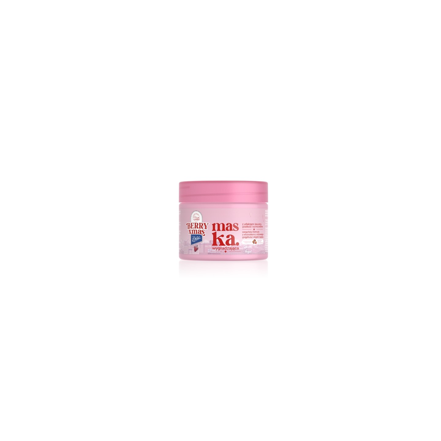 Słodka, radosna i pastelowa linia Strawberry Xmas to świąteczna kolaboracja OnlyBio i Fabryki Czekolady E.Wedel. Zapach mlecznej truskawkowej czekolady otula włosy jak miękki szalik w zimowy poranek, przywołując wspomnienia dzieciństwa i wprowadzając w beztroski, świąteczny nastrój. Maska wygładzająca z efektem bouncy Hair in Balance została stworzona z myślą o włosach, które potrzebują wygładzenia, sprężystości i zdrowego blasku. Jej kremowa formuła wygładza pasma, nadaje im sypkość i elastyczność oraz sprawia, że włosy pięknie się układają i wyglądają lekko – bez efektu przyklapnięcia. Produkt posiada formułę wegańską – odpowiedni dla wegan.
