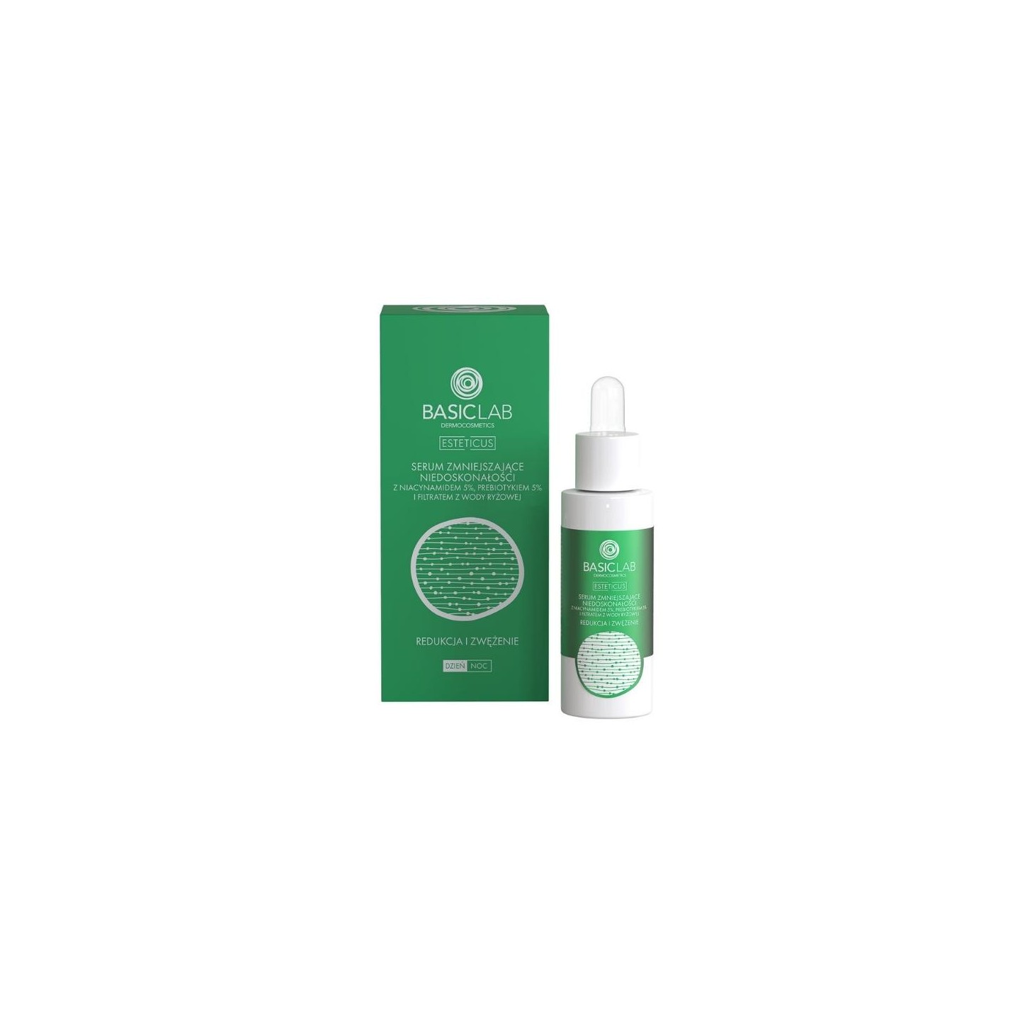 • BasicLab Esteticus Serum zmiejszające niedoskonałości z Niacynamidem 5% redukcja i zwężenie 30 ml
