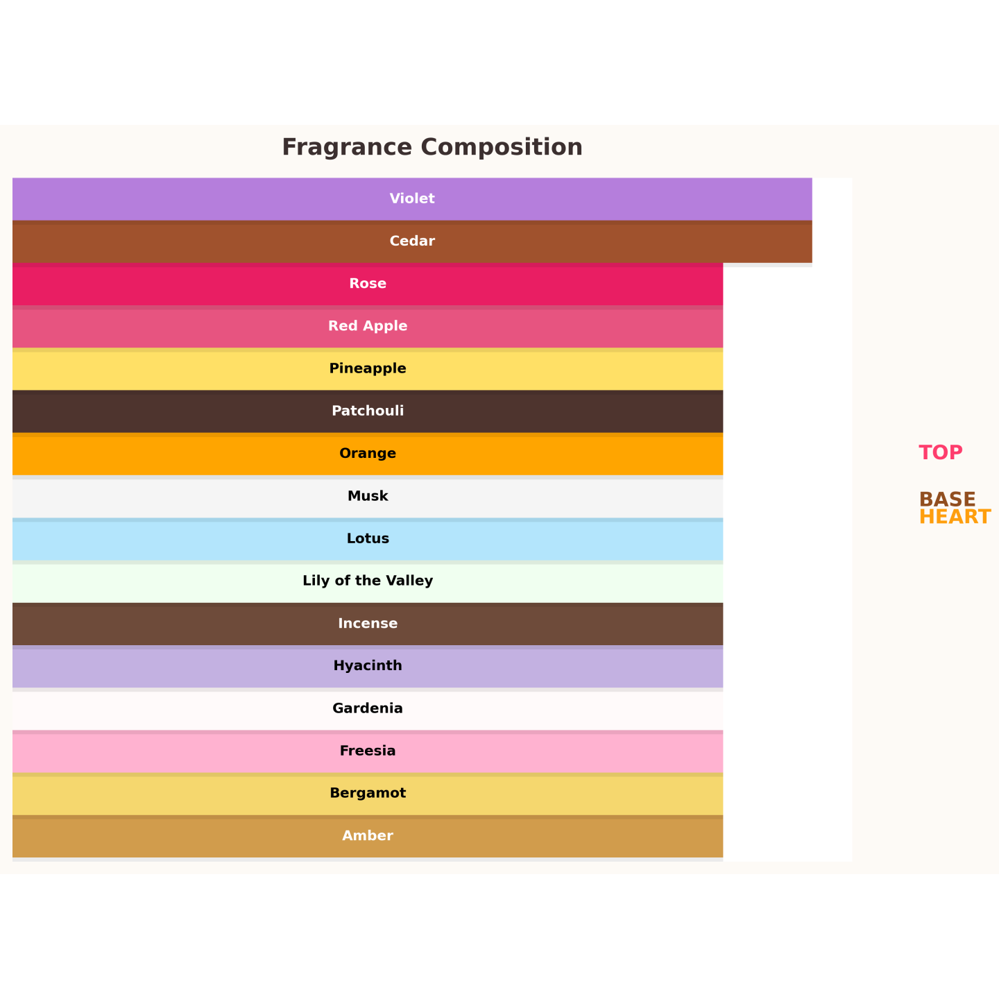 ✔ Serce: fiołek, frezja, gardenia, hiacynt, czerwone jabłko, konwalia, lotos