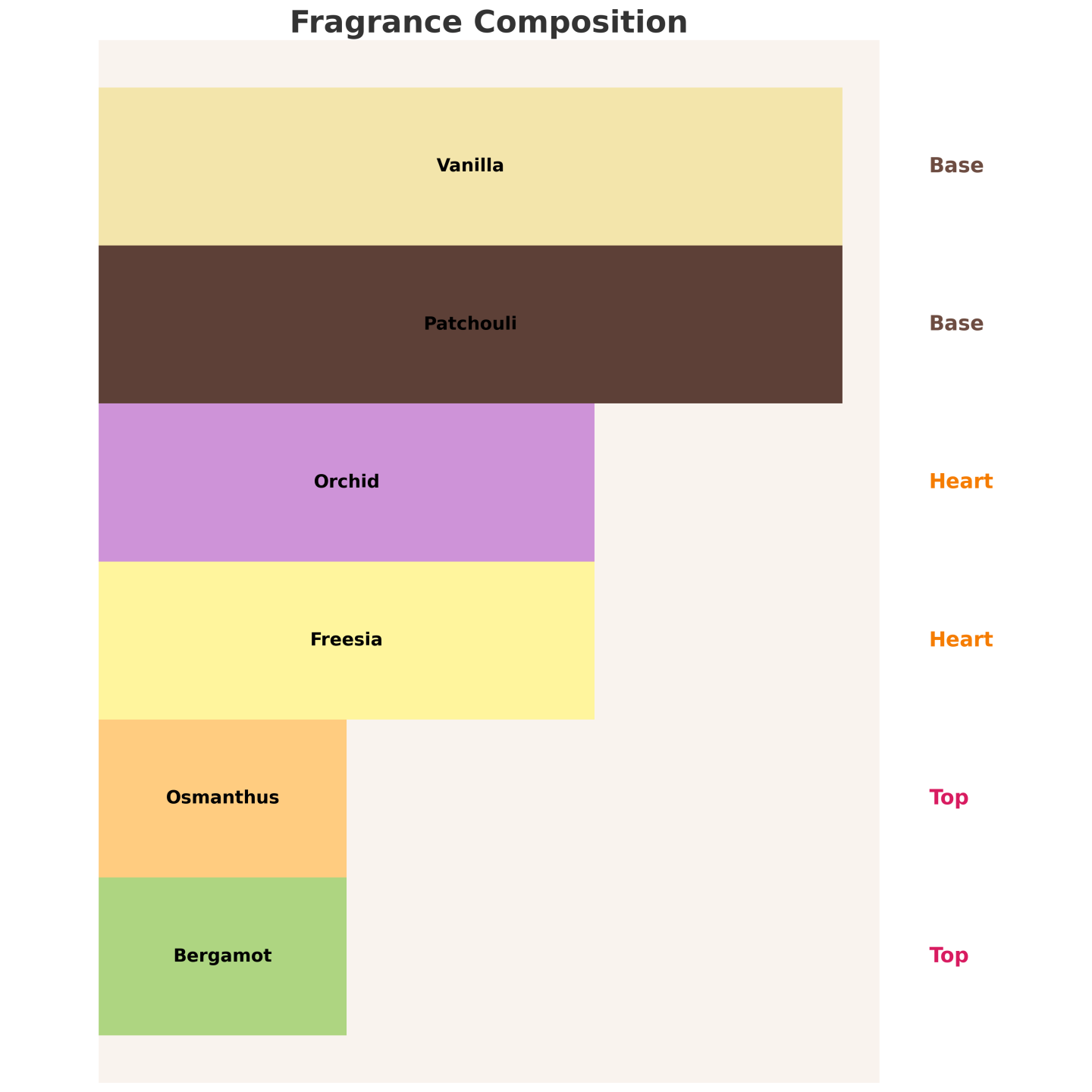 Łączy świeżą bergamotkę i osmantus z kwiatowym sercem orchidei i frezji, a całość otula paczula i wanilia.